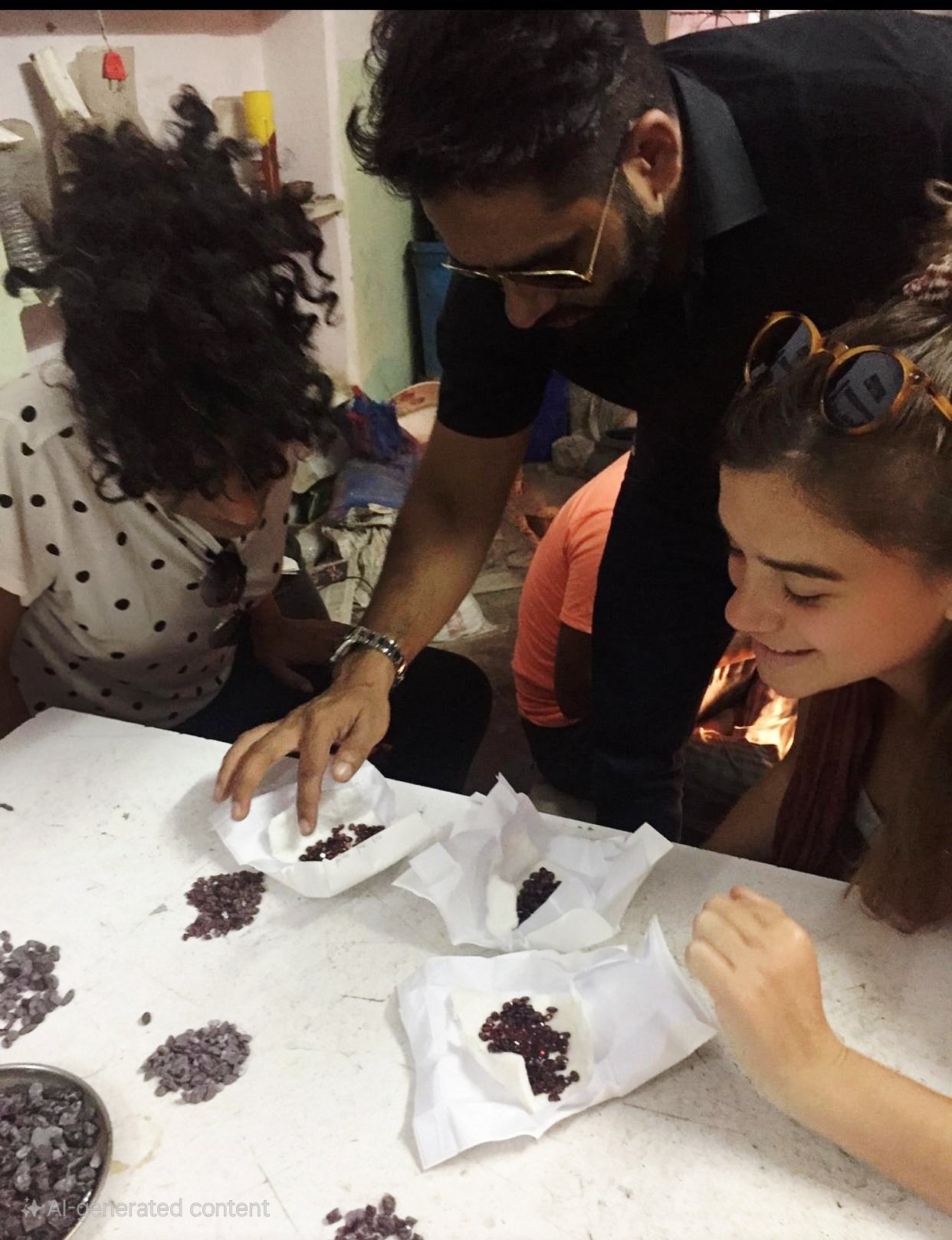Visitors from around the globe come to our workshop to witness the art of gemstone faceting. Here, I share a freshly cut piece, and they examine the precise facets — a skill honed through generations. Their smiles say it all: they loved it.