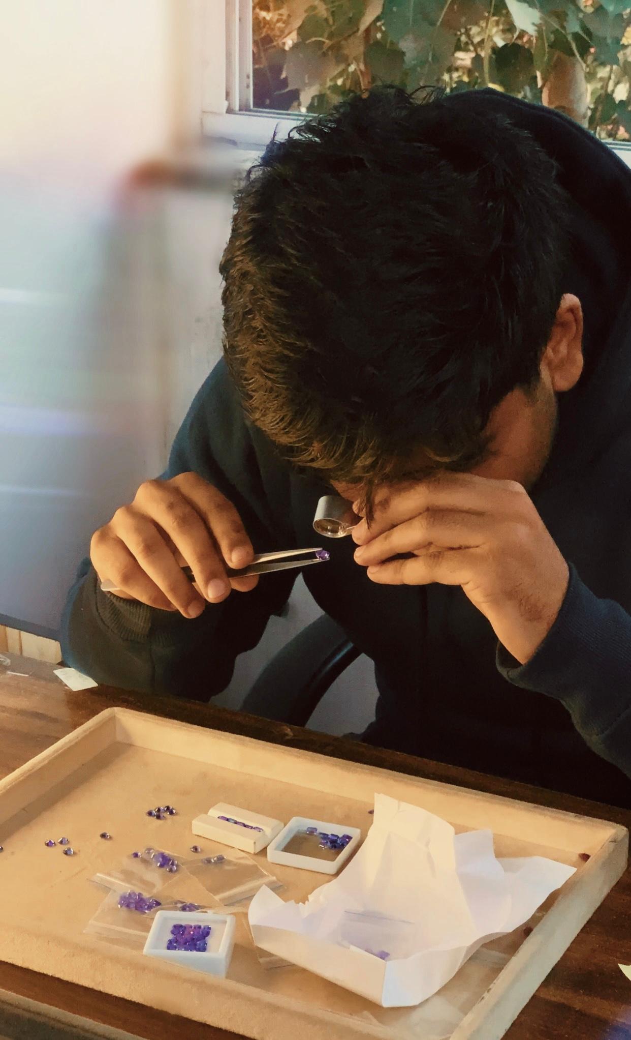 Here I am, Zaid, carefully inspecting each gemstone after cutting to ensure every facet is perfect. Whether it’s a custom piece or a ready-made order, we check every single stone before it leaves our workshop — because excellence is our tradition.