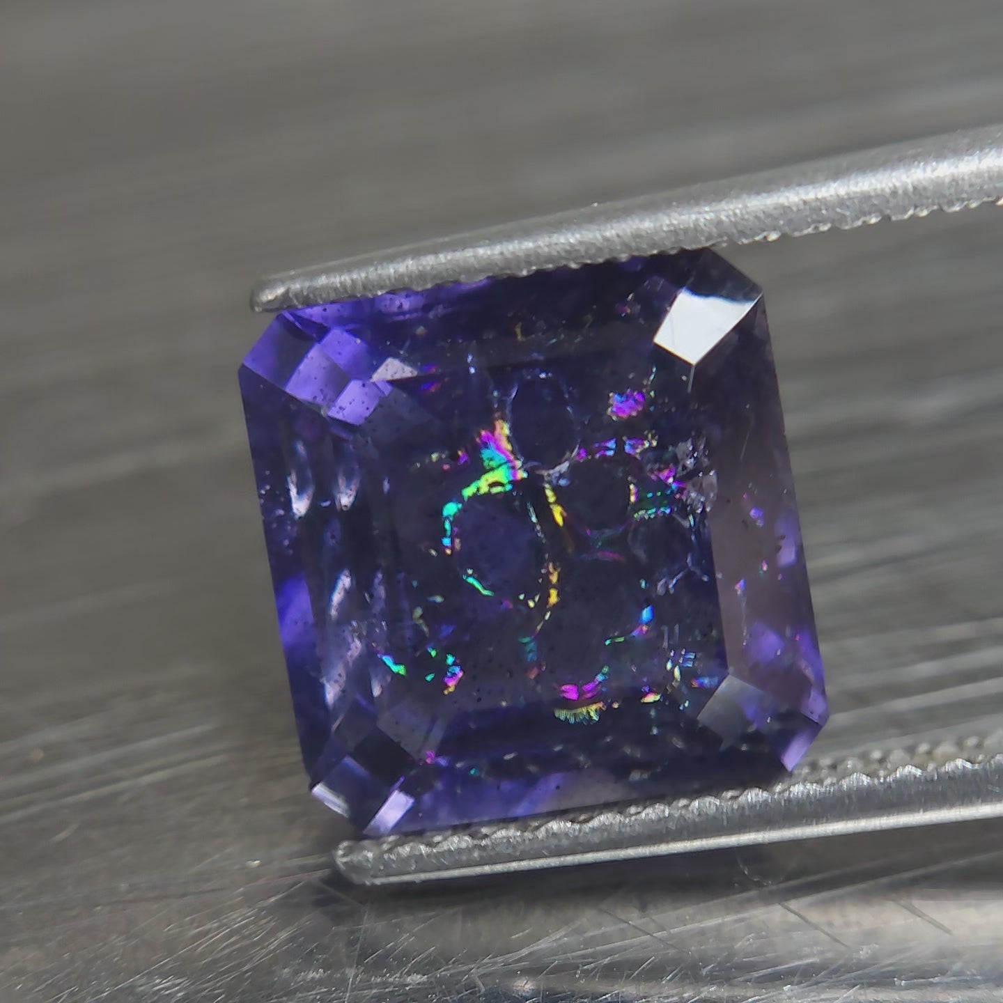 Natural Iridescent Effect Rainbow Iolite, Bloodshot Iolite, Aventurescent Iolite, 9 mm Rainbow Iolite Octagon, 3 Carat Iolite.